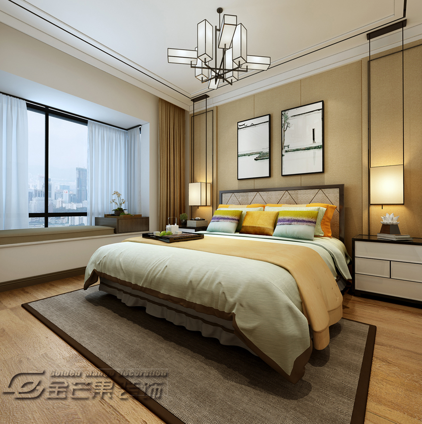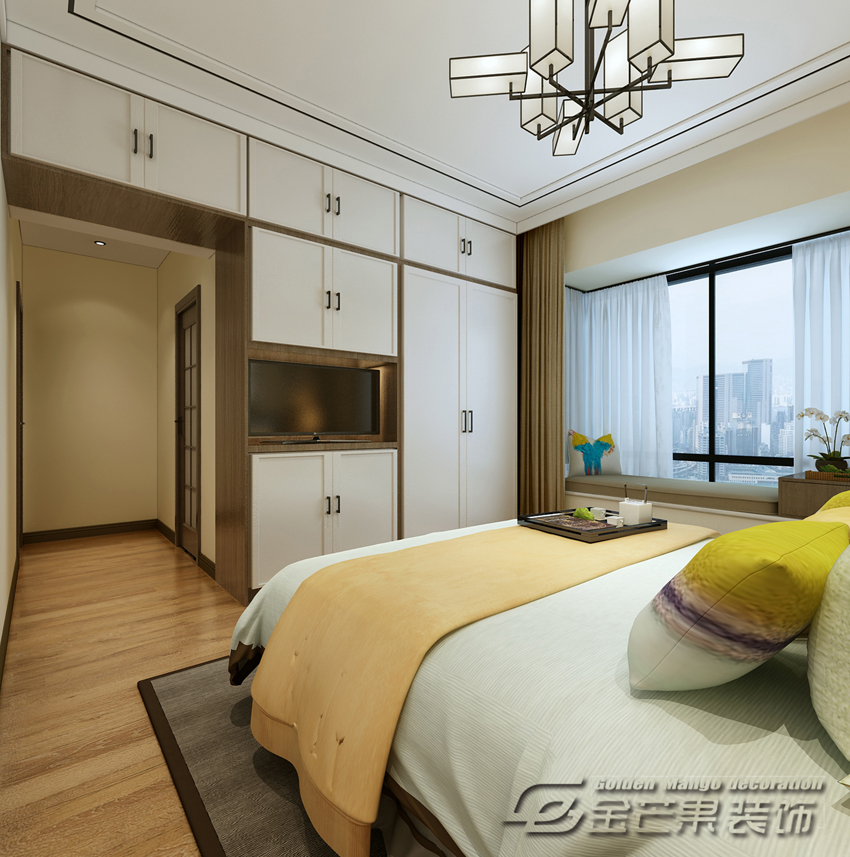 惠景園135㎡ 簡中風格 臥室效果圖 金芒果裝飾設計師 出品