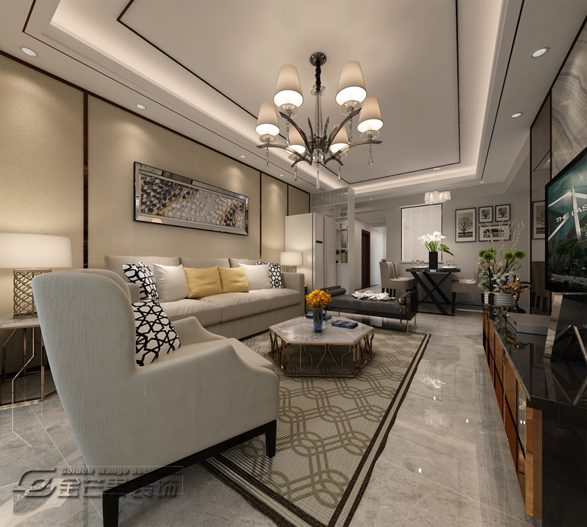 潤城第三大道127㎡  現代風格  客廳效果圖 金芒果裝飾設計師:劉峰 出品