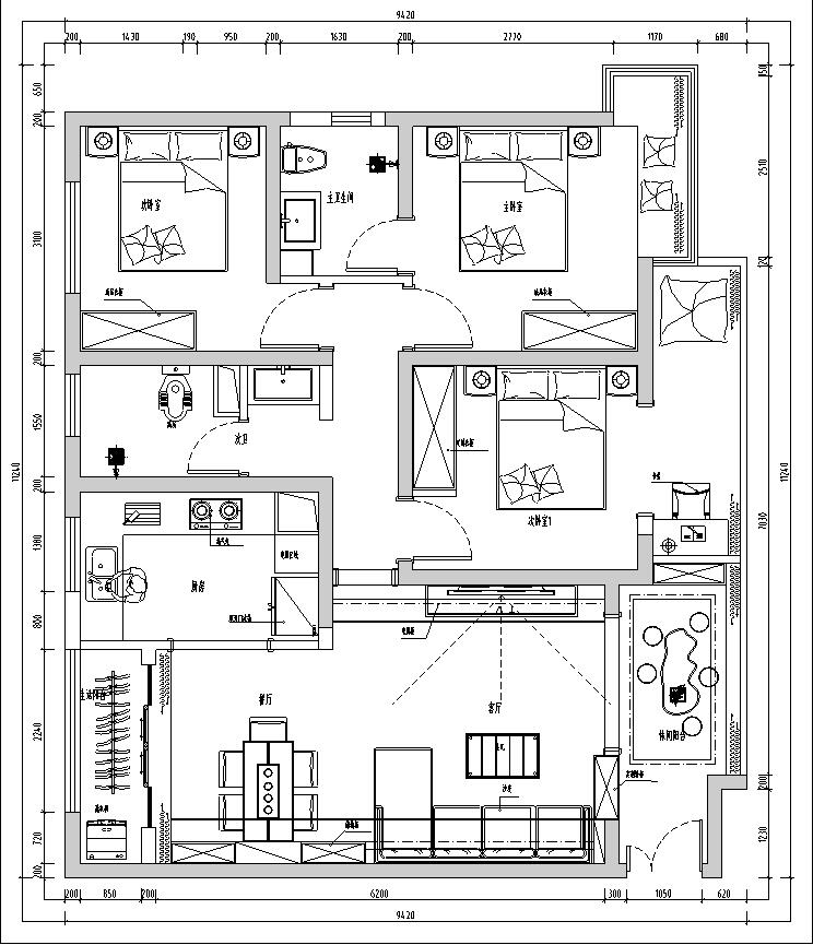 水岸青城109㎡現(xiàn)代風(fēng)格裝修效果圖--李才成