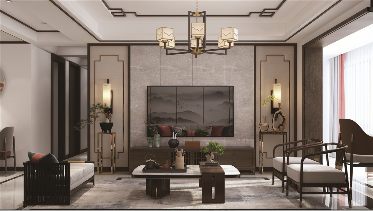 吾悅廣場  138m² 中式風格 客廳效果圖