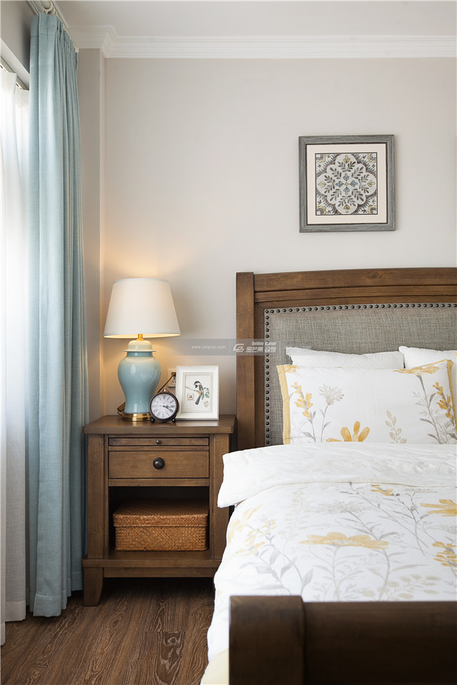 做舊處理的家具也是美式風格打造中常用的手法,個性質樸的同時突出業主的生活品味。木材突出美式的隨性和慵懶,簡雅而復古的氣質讓臥室變得舒適而個性。
