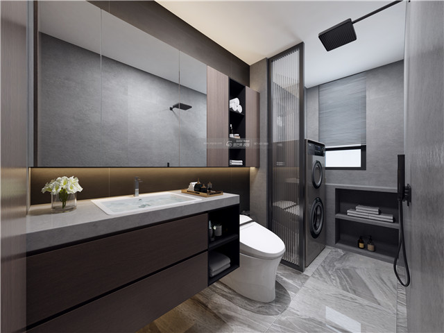 精致感在每一處得以顯現,輕灰的時尚迎合衛生間簡潔、干凈的特性,傳達精致的生活態度。