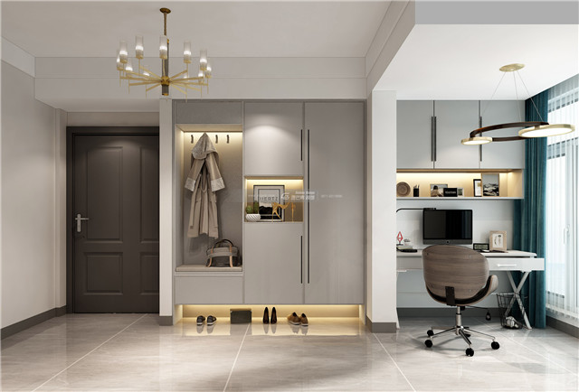 入戶設置卡座和玄關柜,方便收納,進出之間更方便。相鄰辦公區(qū)域,即可辦公亦可休閑,讓家居更加多變,功能性更強,品質(zhì)更加提升。