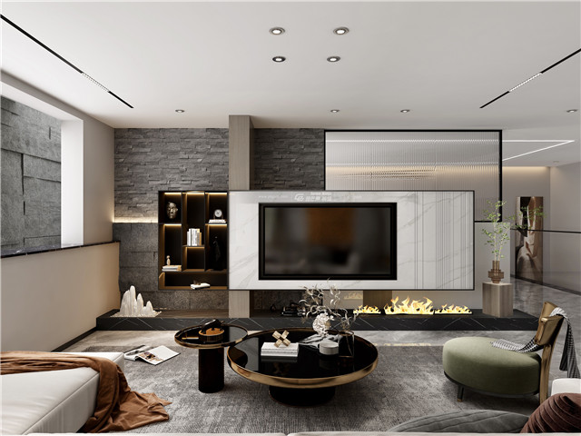 獨特的電視背景墻設計,質樸與格調并存,交織出充滿韻味的空間魅力。