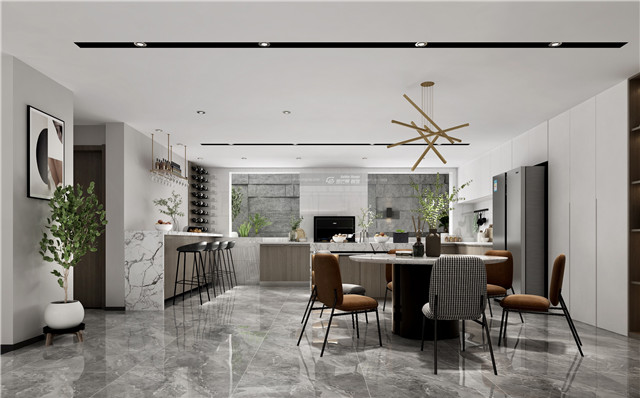 吧臺、中央島臺文藝餐桌椅,無不在展示屬于現(xiàn)代的時尚氣息,青葉飄香,渲染的是那一縷純粹自然的情愫。