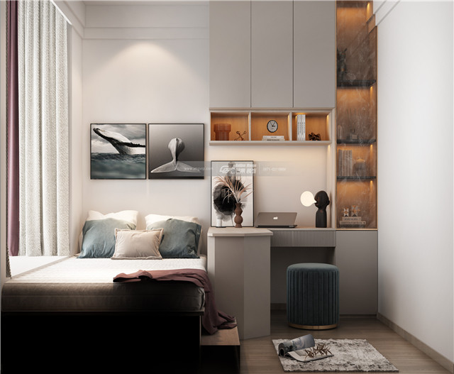 書房+踏踏彌多功能房,書房時氣質(zhì)沉靜、純粹,榻榻米房時舒適、安逸的空間氛圍。