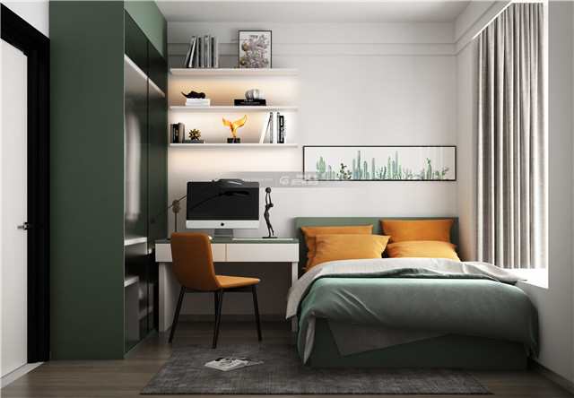 清新的綠色讓臥室變得寧靜簡雅,加入橙色增加溫暖的氛圍,清新雅致的家居格調(diào)讓臥室變得放松而安逸。