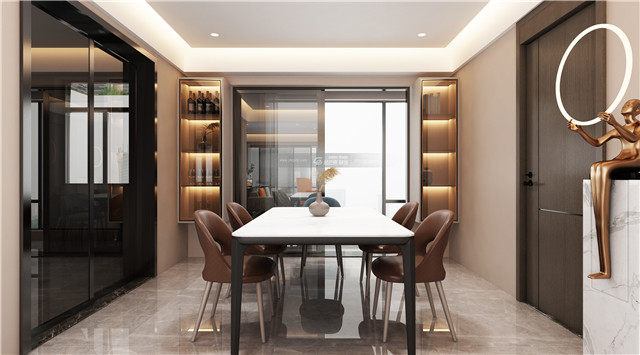 黑色的玻璃門框和金屬材質(zhì),蔓延出高級華麗的家居儀式感。