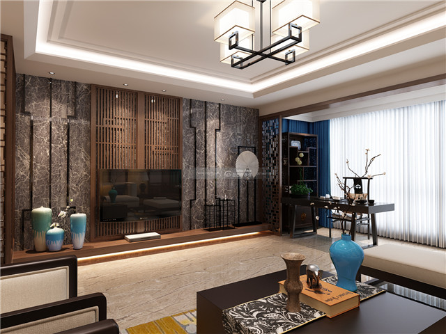 剛正的大理石搭配中式屏風裝飾和中式圖案線條,大理石的花紋和木材的雅致端厚結(jié)合在一起,營造既個性、又有格調(diào)的中式氣質(zhì)雅韻。