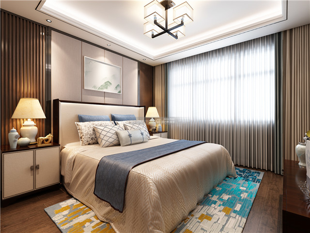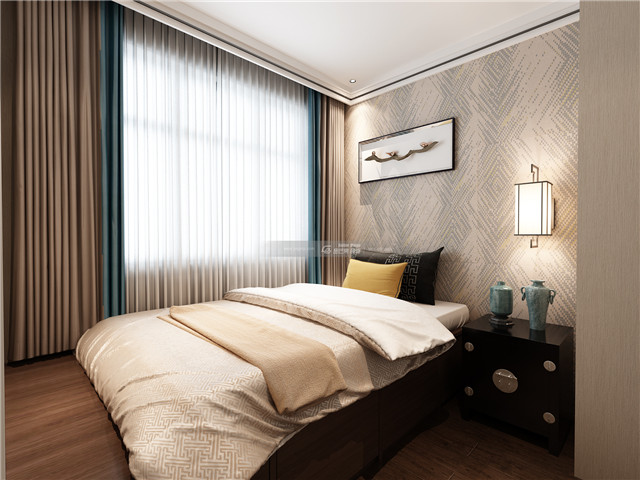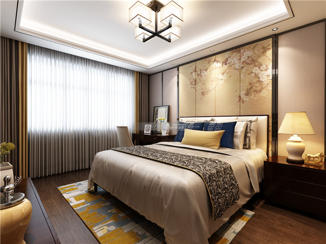 花鳥圖案床頭背景墻,渲染超棒的中式貴氣,雅逸的格調(diào)既有中式個性又有品質(zhì)感。