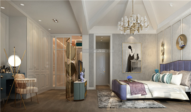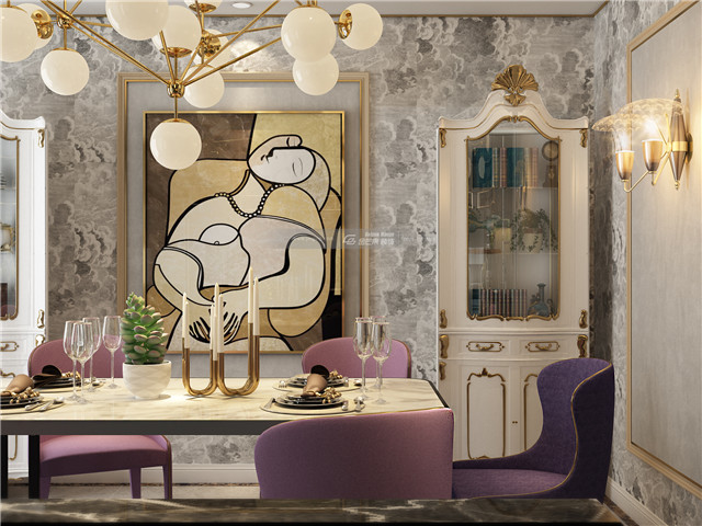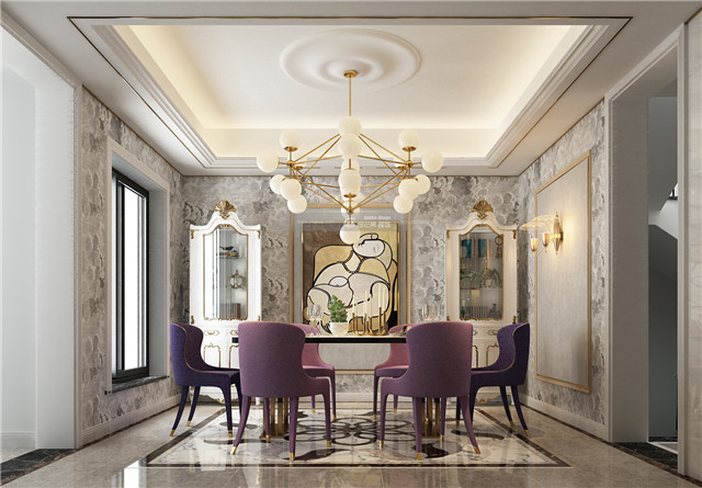 斜斜的吊頂摒棄常規(guī),營造宮廷般的尊貴大氣感。神秘優(yōu)雅的紫色始終貫穿全屋,貴氣拿捏得恰到好處,不失家的舒適,又彰顯靚麗與神秘優(yōu)雅。彰顯貴氣的地毯,傳遞著空間主人對奢雅生活的態(tài)度,貴氣的金屬裝飾,在光影的光耀之家,讓家變得高級而尊貴典雅。