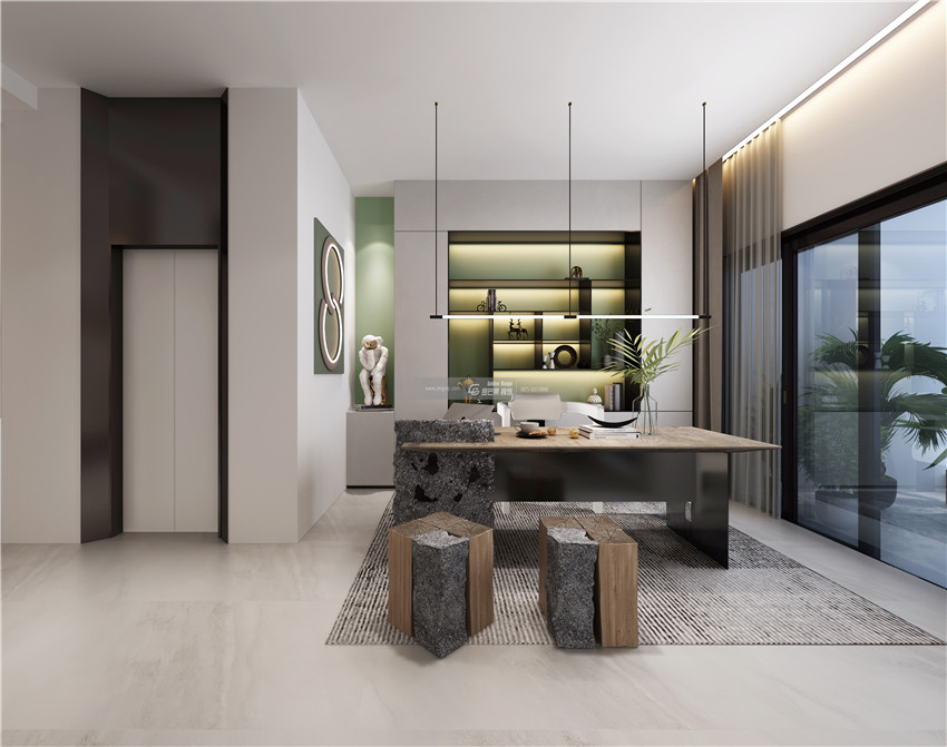 清寧的綠色和室外光線結合,彰顯利落、清雅的別樣現代氣息。