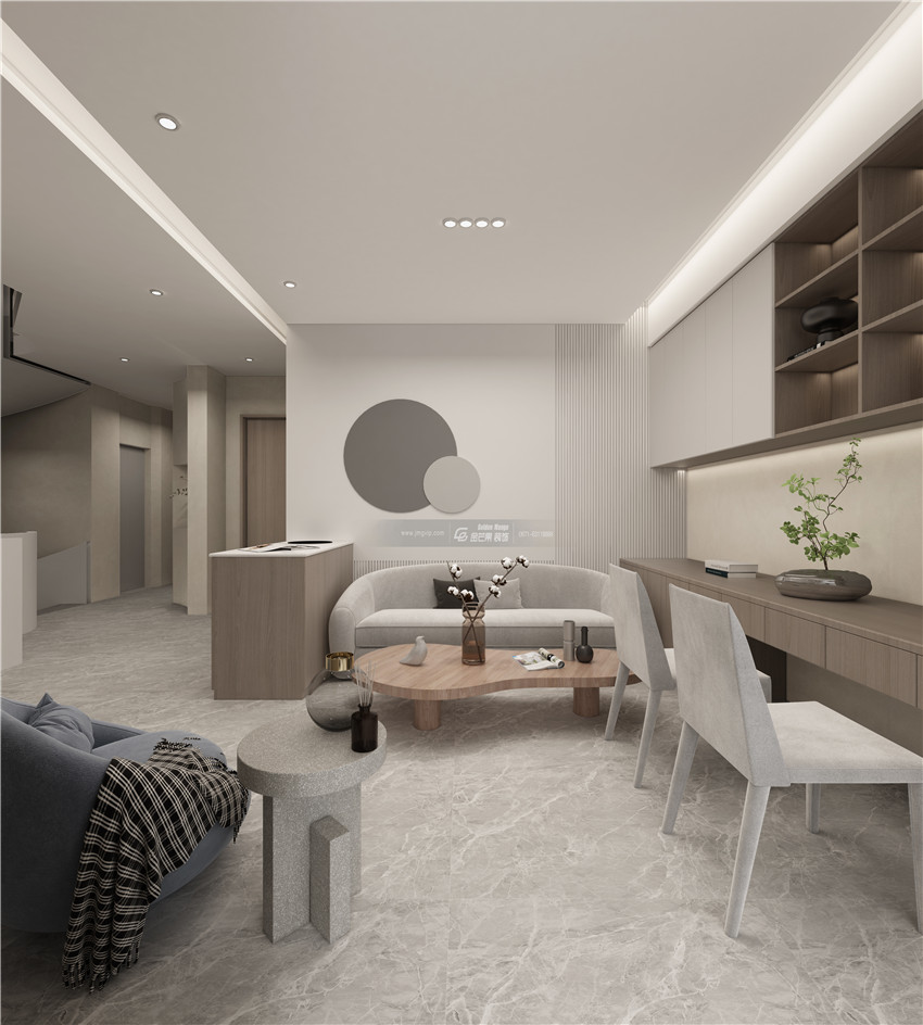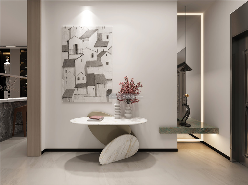 用富有現代氣息的筆觸,構造人和空間的和諧關系?;疑c生俱來的高級感,在材質和線條的襯托下呈現一種冷靜、時尚的空間格調。