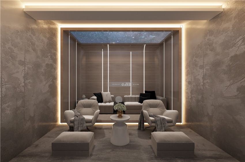 獨特吊頂造型,開闊的空間,寬闊宏偉的視覺體驗,形成一種獨特空間表達方式。自在且適意,瀟灑且自由。