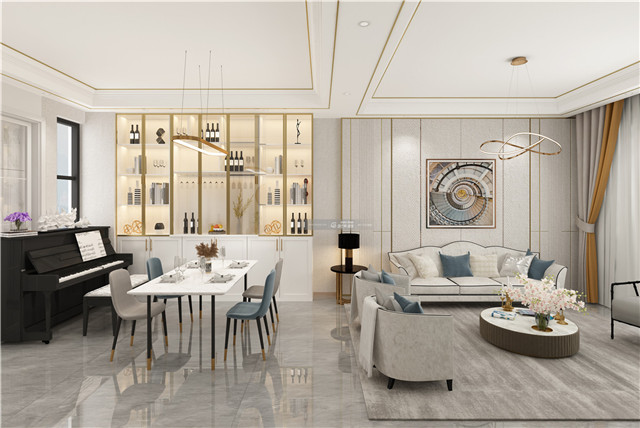 客廳和餐廳顏色和諧統一,溫馨的配色舒適清新,精致的餐邊柜帶來華麗的儀式感。