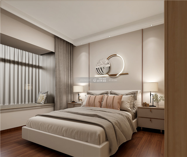 中式美和現代美的結合,溫柔的配色溫馨舒適,細膩溫馨的顏色讓臥室變得放松而舒適。既有現代的時尚精致,又有中式的典雅婉約。