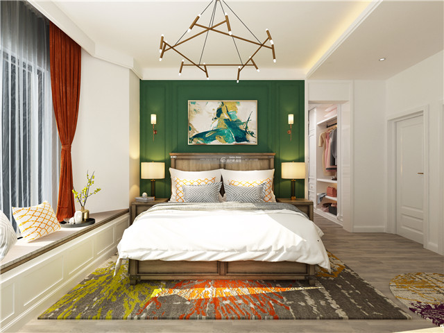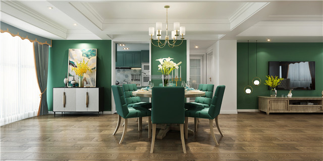 綠色的電視背景墻充滿個性,美式家居摩登中的復古最是迷人,彰顯奢華的高級感。