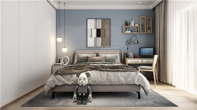 淡藍色的質(zhì)感加上溫馨的裝飾,讓家居的溫馨舒適時尚感彰顯。舒適的床品,可愛的裝飾,一切都是溫馨舒適的感覺。