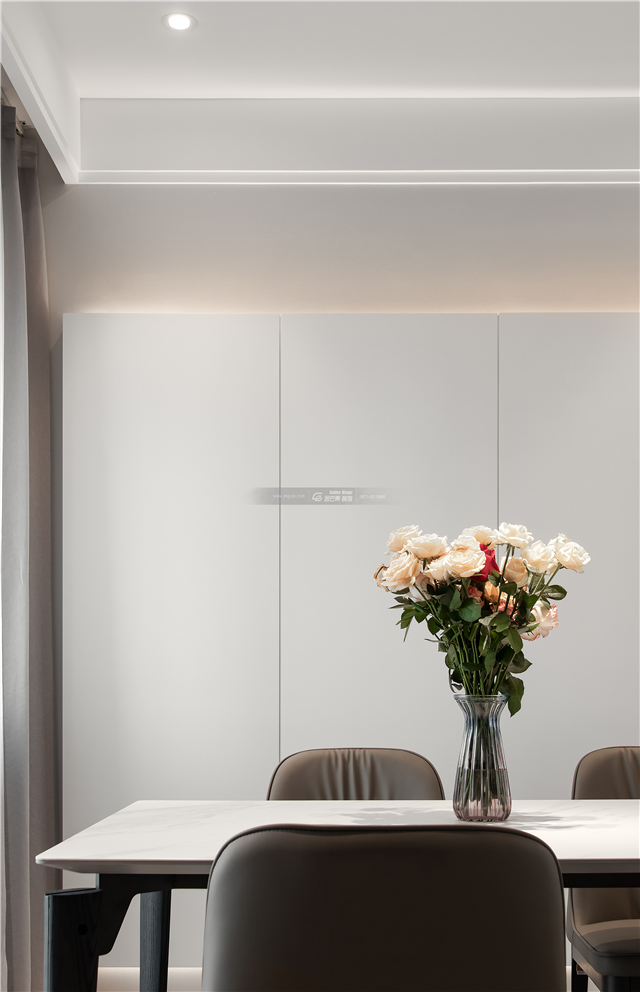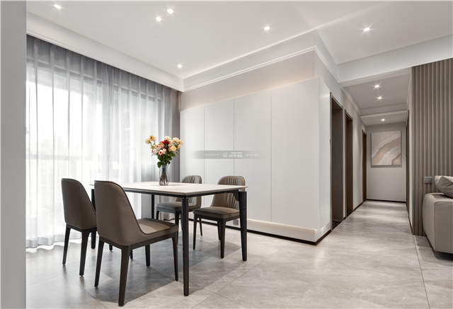 灰色紗簾傳遞的溫柔品質(zhì)感,渲染餐廳里的浪漫情調(diào)。