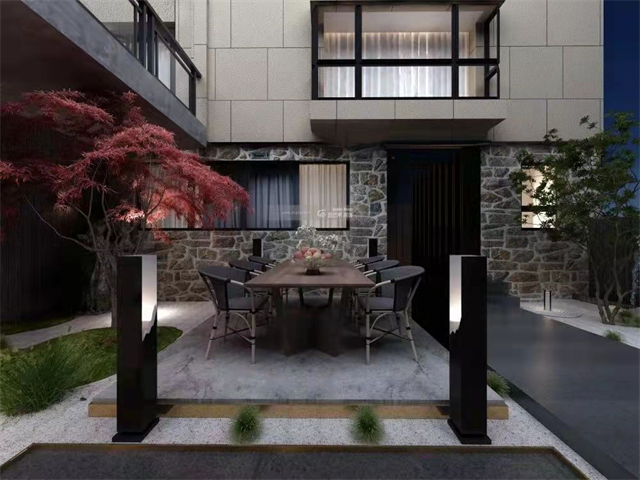 室外地面線條,花紋的運用配上精美設(shè)計的餐桌, 再加之窗簾軟飾的精心設(shè)計和院內(nèi)綠植美化,漂亮又有品。