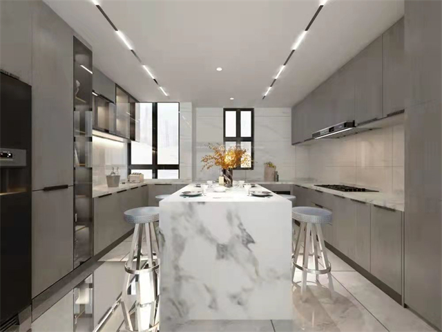 柜體設(shè)計,家電合理嵌入,在材質(zhì)搭配下彰顯品質(zhì),再加上島臺操作方便,多人聚餐,美觀實用。