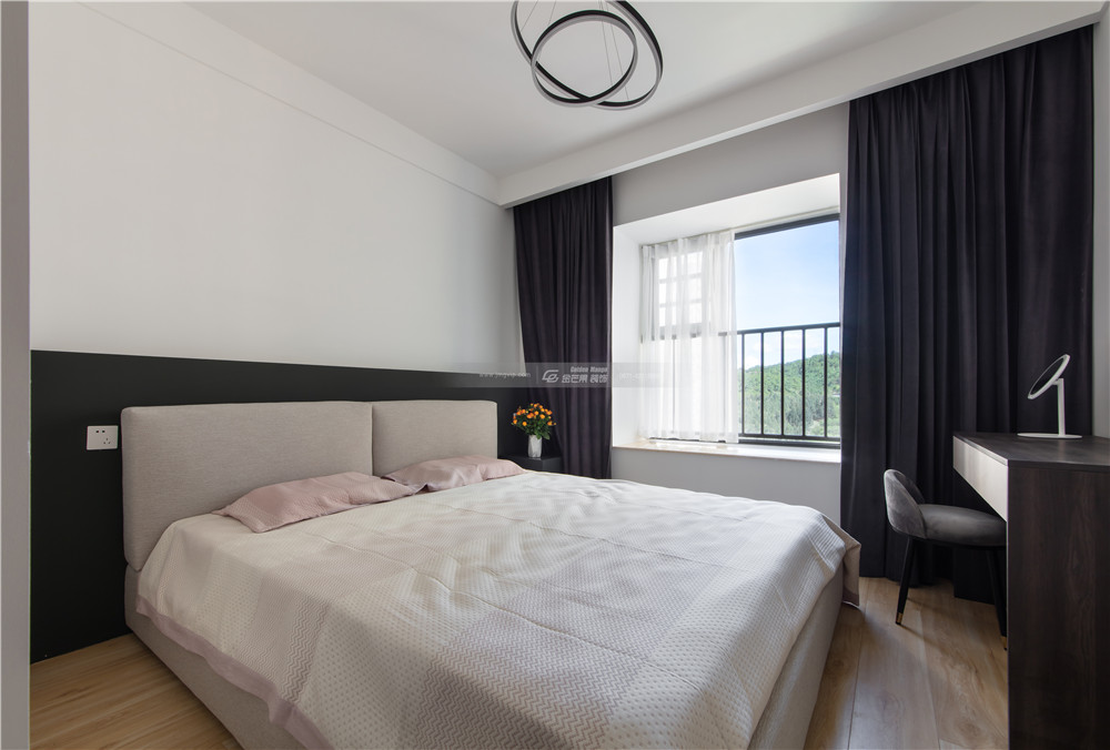 黑色搭配白色使干凈空靈的空間增加了神秘感,粉色大床更使空間又增添了少女浪漫的情懷。