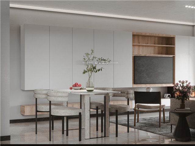 簡約的氣質放松而精美,大量柜體簡約卻又帶來大量收納空間,和原木搭配展現(xiàn)一種溫馨而又慵懶的溫度居家。