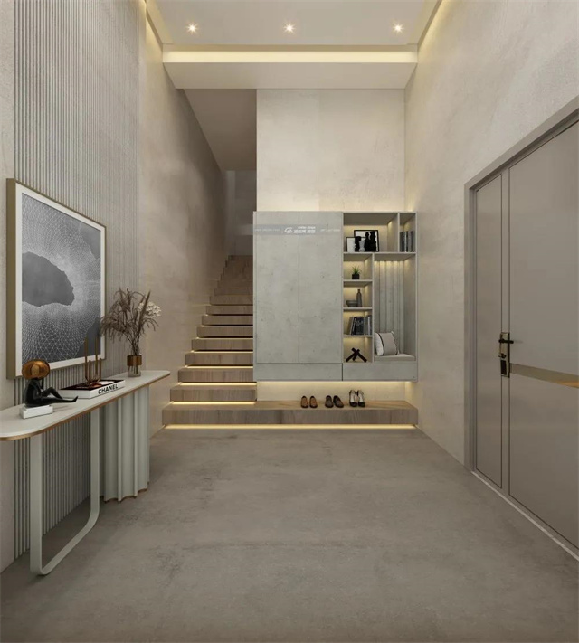 沉寂的色調(diào),大膽的金色線性燈是,簡(jiǎn)約藝術(shù)的搭配,門廳格外的舒適。