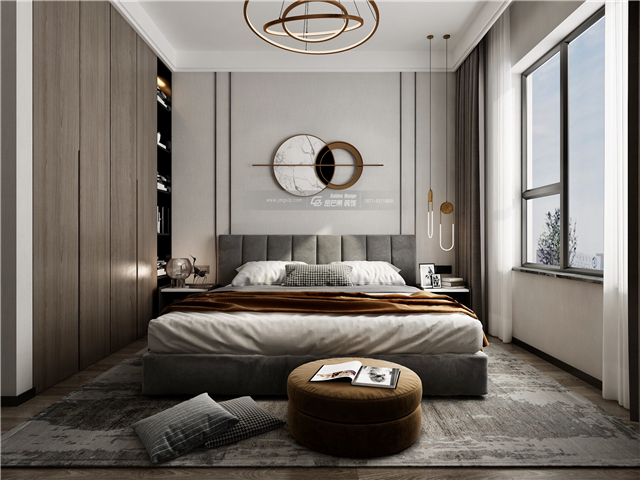 溫暖優雅的顏色,營造溫馨舒適的臥室氛圍,床頭融入裝飾,增加時尚感。