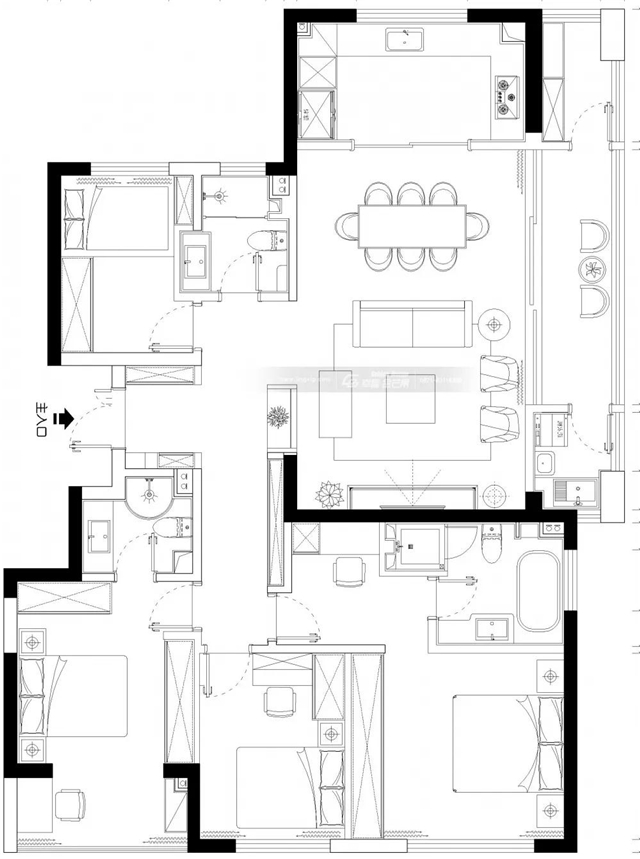 寬大的落地窗將清風和陽光很好的納入屋內(nèi),有序而適意的空間節(jié)奏,營造舒適的家居生活。