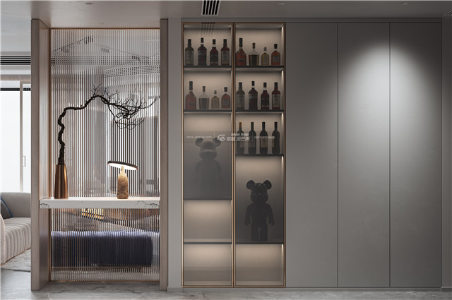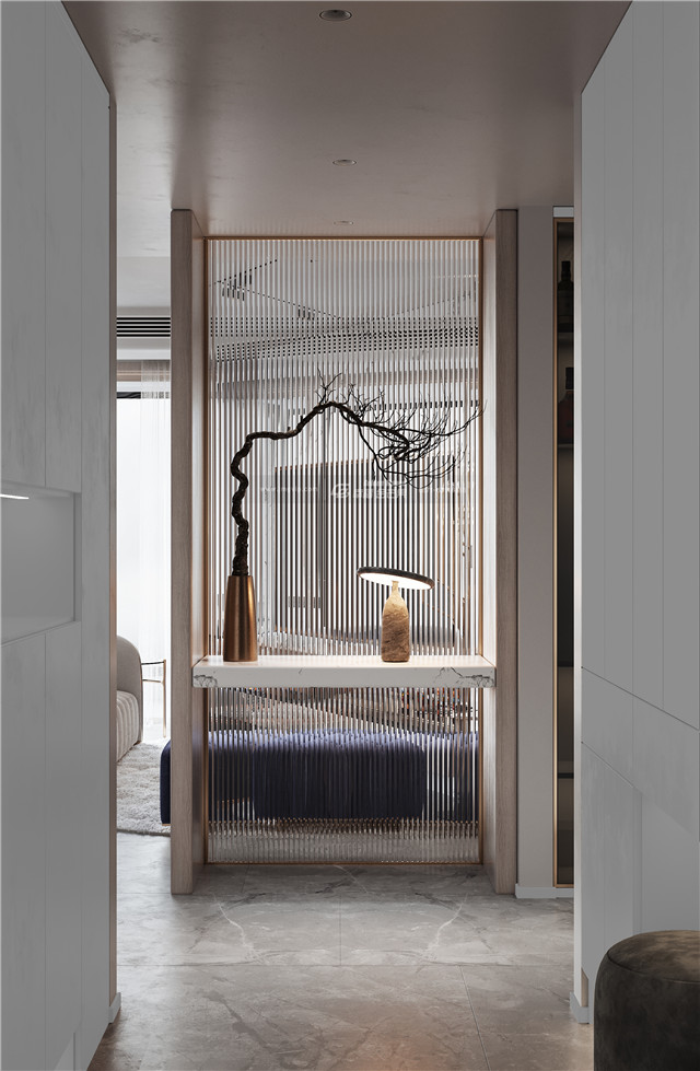 松際露微月,茅亭宿花影。清風疏影,入戶既展現(xiàn)空間的清逸和非凡氣度,不免有讓人想要更進一步一探究竟的意愿。長虹玻璃打造隔而不斷的效果,若隱若現(xiàn)間,空間格調(diào)感倍增。