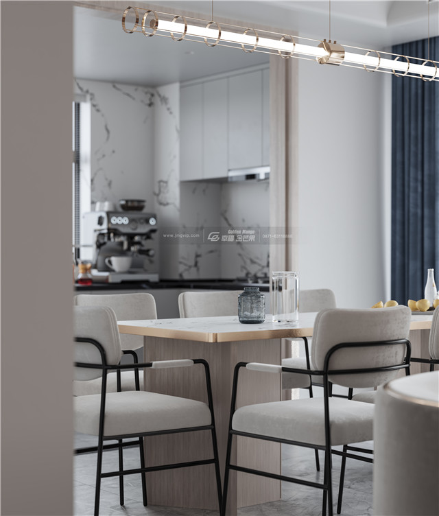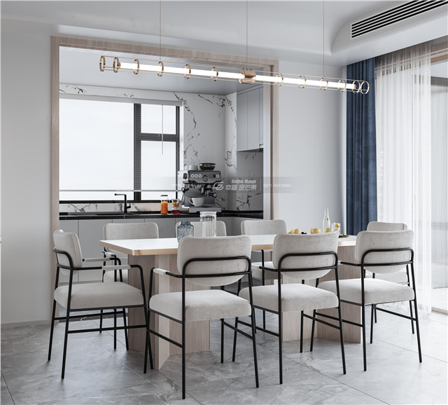 經(jīng)典的黑白搭配,既展現(xiàn)高級的格調(diào),又不失清新之感。采用細線條餐椅,展現(xiàn)精致感的同時,醞釀細膩溫柔的家居體驗。
