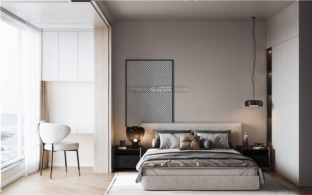 統(tǒng)一的淺色調(diào)不會過于雜亂,讓身心變得沉靜,隨之產(chǎn)生的是適合舒睡的親切感。木色帶來純粹的空間感受,展現(xiàn)返璞歸真的家居氣質(zhì)。