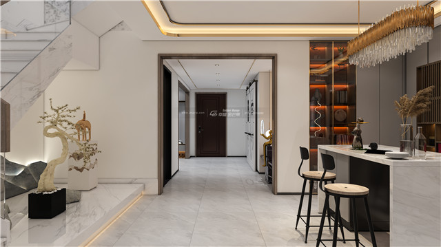 個性裝飾和輕奢燈飾、線條的結合,讓入戶就能感受到空間的多變。
