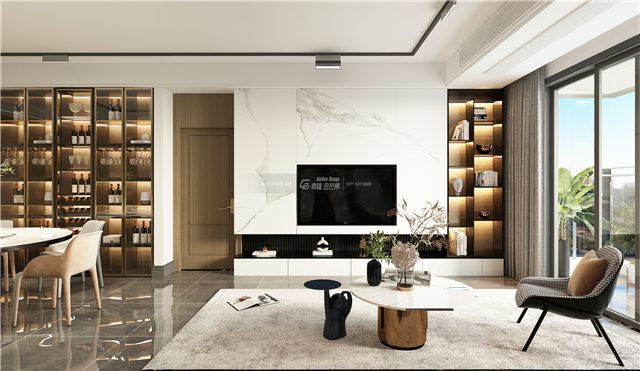 大理石電視背景墻,簡雅精致,設置展示和收納空間,讓空間層次感更豐富,水泥地面增加精致靚麗的感覺。恰到好處的格調讓家品質感自現。