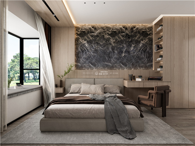 床頭背景墻用木材和文化石結(jié)合,原始的純粹之美讓空間更顯韻味。文化石靈動(dòng)的花紋,為空間注入更多的靈氣,和木材的溫厚感結(jié)合起來,層次變得更加豐富。