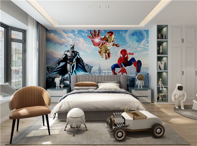 床頭背景墻是一整面的動漫人物,充滿無限的想象力和創造力,不斷突破桎梏,孩子的未來擁有著無限的可能。
