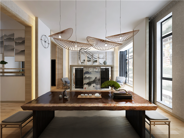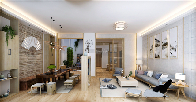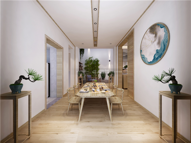 氣淑風(fēng)和,如沐和風(fēng)。入戶的格柵門和滿目的原木,樸實(shí)而又干凈素雅,水墨畫裝飾,頗為家居增添幾分禪意,韻味更加濃厚。