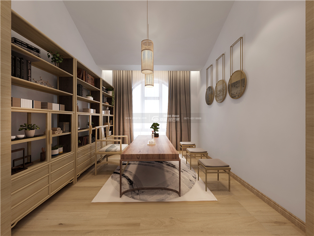 結(jié)廬在人境,而無車馬喧。燈具的選擇和博古架、書桌的搭配恰到好處,放下汲汲營營,無謂是非,只行風(fēng)雅。