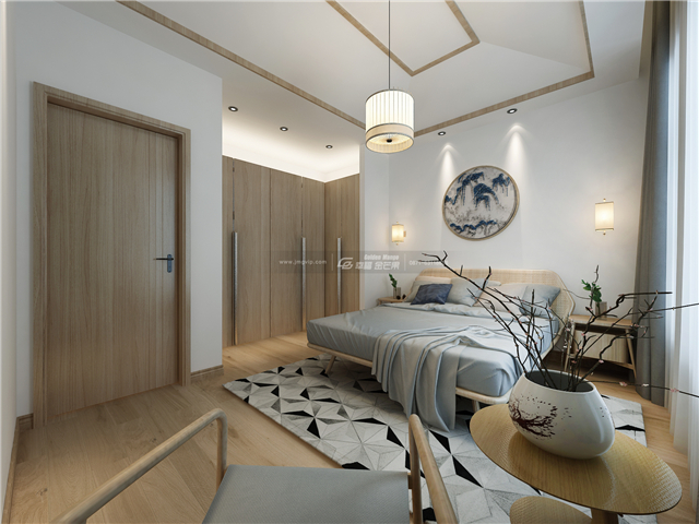 沒有過多的裝飾,木材本身的紋理醞釀出自然清閑的家居氛圍。質(zhì)樸的原木色,純凈的白色反射自然光線,將家居營造的明亮自然。日式燈飾,障子門,將日式和風(fēng)自然幽靜的平淡適然感很好地傳遞。