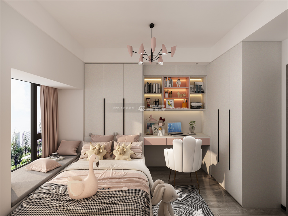 整個(gè)房間以羊絨灰和溫柔粉為主,營造了溫柔感和高級感。