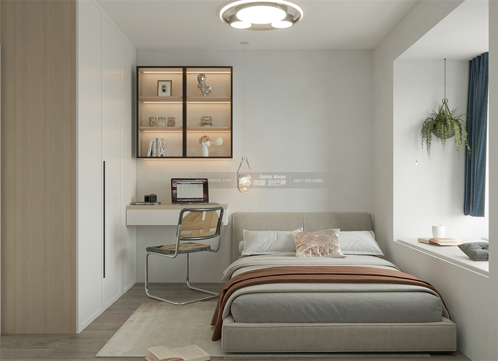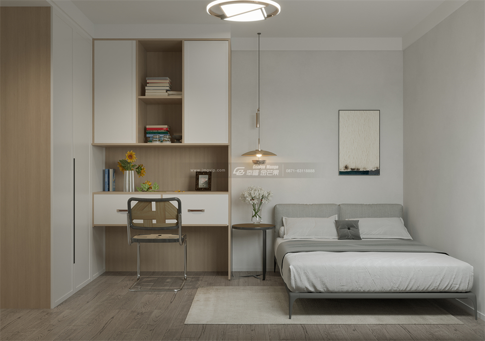 衣柜書桌一體式設計,完美解決收納問題,最大化實現(xiàn)空間有效利用。功能有了,顏值也有了,待在這樣的空間里,整個人都是平和舒適的狀態(tài)!