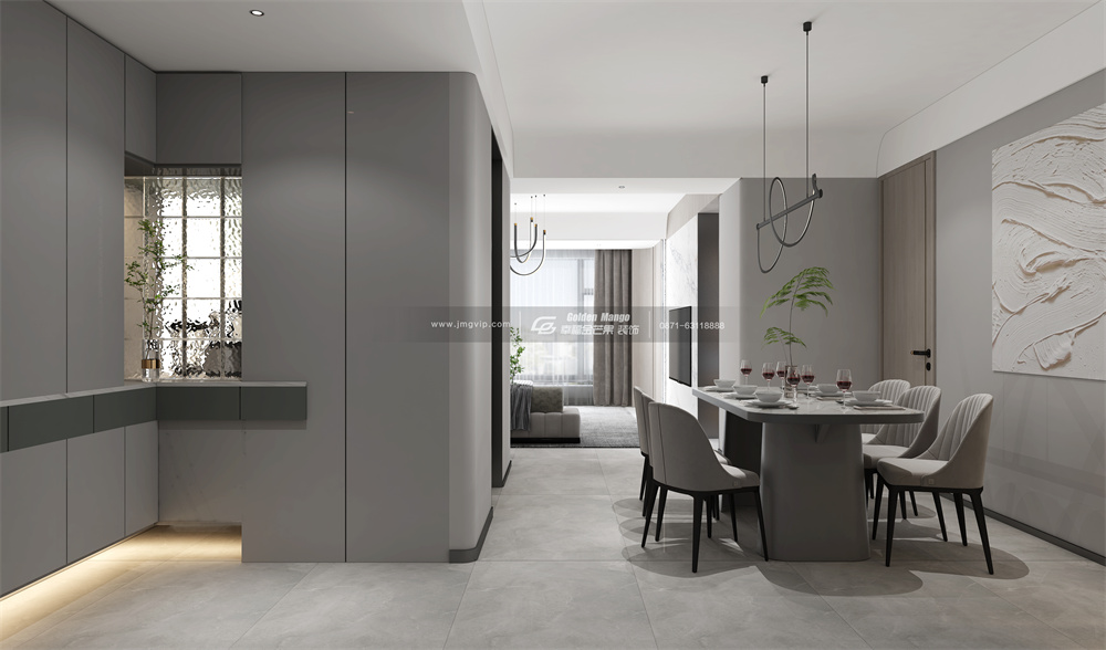 霧欲淡,水如空,一葉飄然煙雨中。低飽和的高級(jí)灰色調(diào),自然清新與精致相結(jié)合,給人帶來(lái)一種煙雨朦朧的感覺(jué)。幸福金芒果裝飾在昆明西南海小區(qū)的設(shè)計(jì)就體現(xiàn)出這種感覺(jué),整體空間采用低飽和色調(diào),搭配上現(xiàn)代簡(jiǎn)約的風(fēng)格,自帶濾鏡高級(jí)感!
