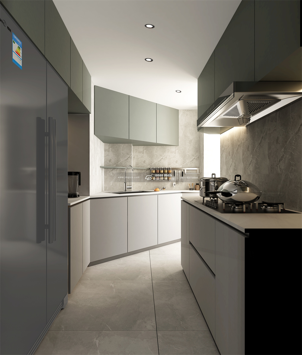 廚房正對(duì)餐廳空間,方便日常生活;異型的柜體設(shè)計(jì),充分利用房屋本身的空間結(jié)構(gòu),最大程度地加強(qiáng)了廚房的實(shí)用性,整體室內(nèi)空間線(xiàn)條更加流暢。