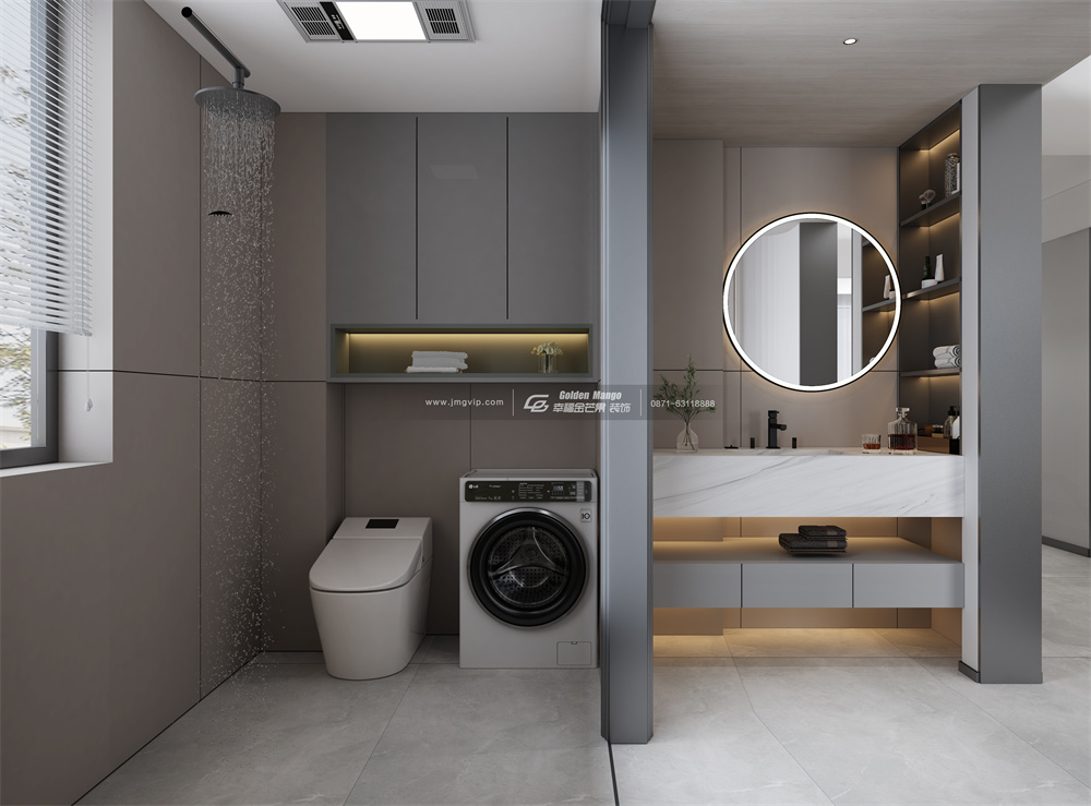 衛(wèi)生間沿用客廳色調(diào),整體布局美觀(guān)大方;且分隔空間后兩個(gè)區(qū)域互不干擾,提高了衛(wèi)生間的使用效率,使用起來(lái)也更方便舒心。