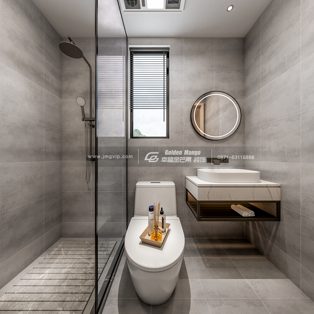 衛生間兩分離,干濕兩區可以一同使用,方便又實用;通鋪的灰色瓷磚更具現代風的時尚,耐臟又難看,整個衛生間感官上簡約整潔,細節之處都是品味的象征。