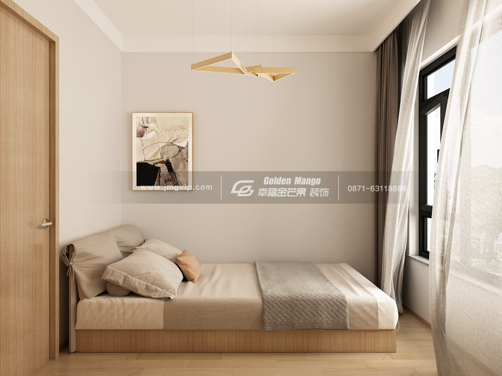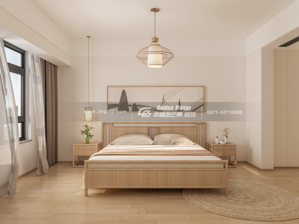 次臥自然純粹的原木風元素,淡雅簡約,柔和的陽光透過窗戶,整個空間顯得更加溫馨了。