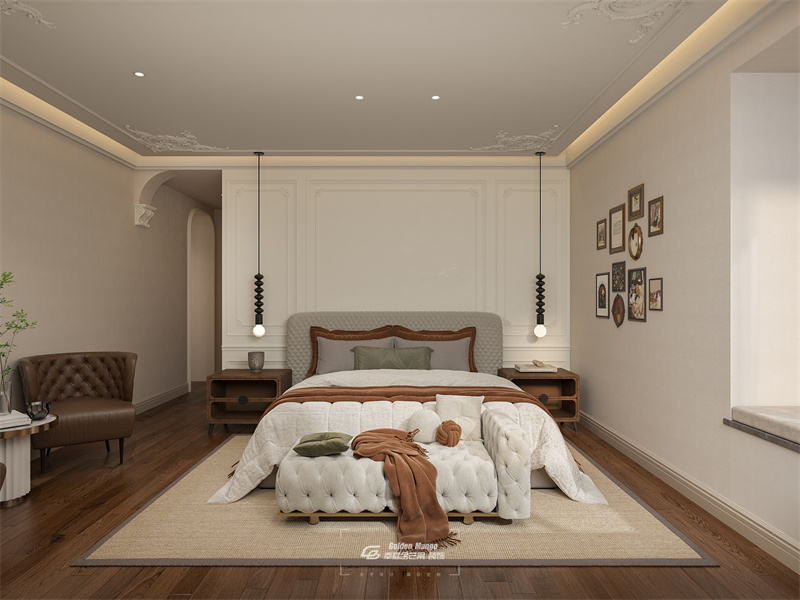 把裂痕裱進(jìn)相框,回憶織成經(jīng)網(wǎng),復(fù)古的氛圍更顯溫馨。低飽和度的顏色,營造放松的氛圍,更有利于擁有良好的睡眠。法式的貴氣展露著低調(diào)的奢華,浪漫優(yōu)雅的感覺彌漫在空間每一個(gè)角落。