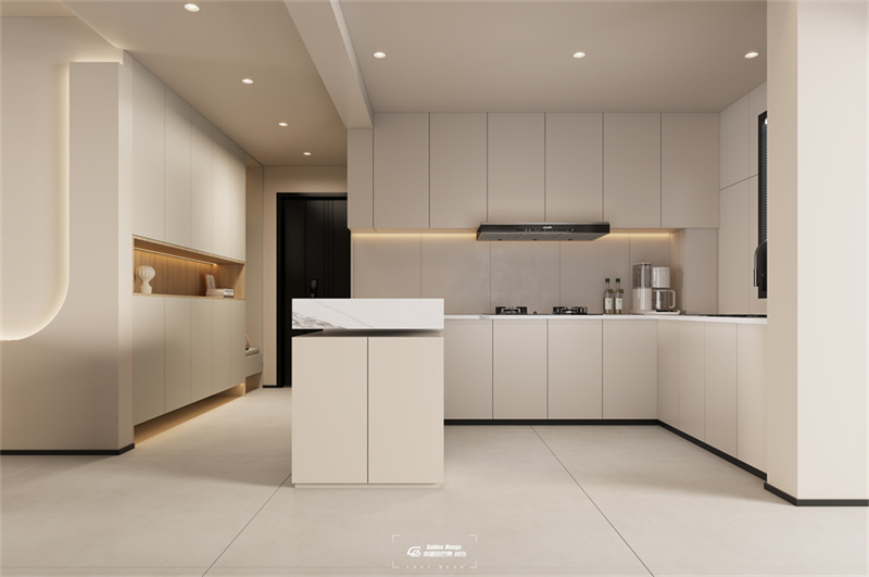 U型廚房讓操作動(dòng)線更加流暢,操作更加流暢。一進(jìn)門(mén)看見(jiàn)家人在廚房忙碌,即刻便可進(jìn)入到與家人的互動(dòng)當(dāng)中,每一個(gè)轉(zhuǎn)折之間都充滿驚喜。
