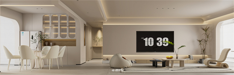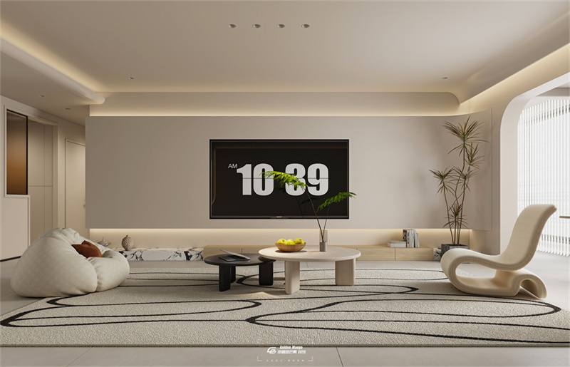 客廳沙發(fā)消失術(shù),沙發(fā)的顏色與背景融為一體,使整個(gè)空間更加地輕盈與放松。用曲線將軟糯的溫柔質(zhì)感盡情揮灑,展示著優(yōu)雅且恬靜的魅力。